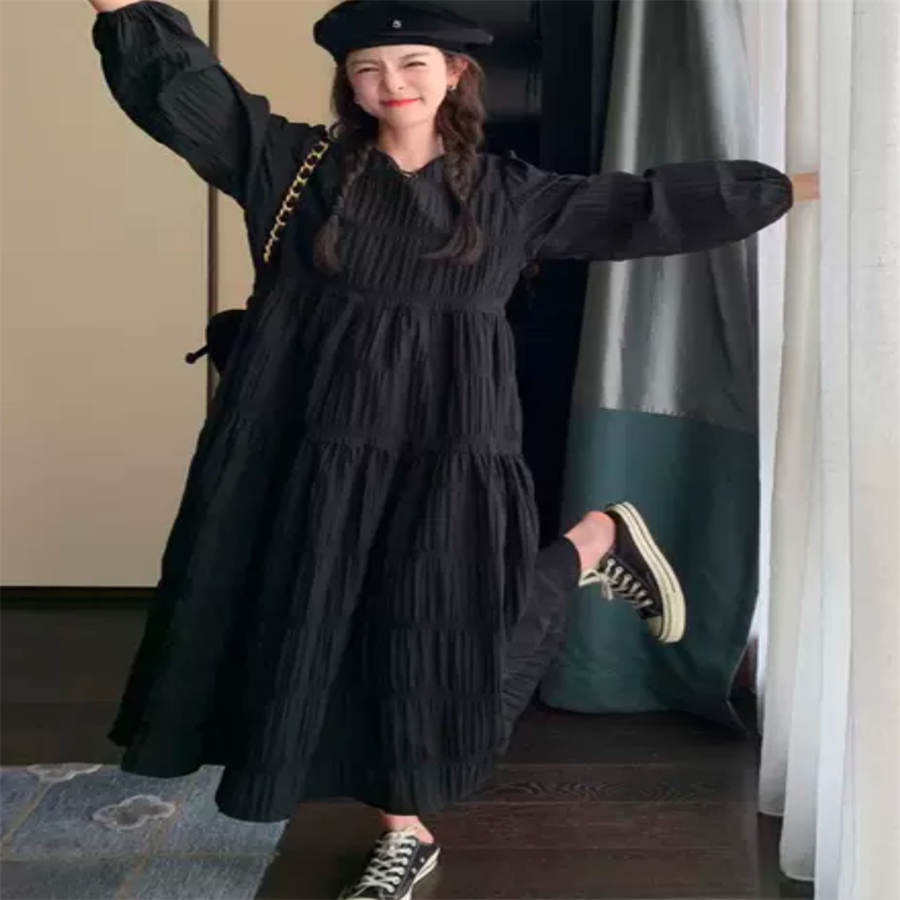 くしゅくしゅとした素材が特徴的なマキシ丈ワンピース