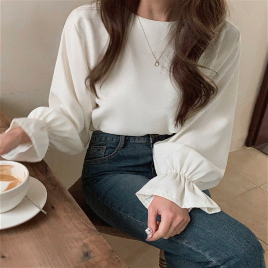 フレアスリーブの長袖ブラウスです