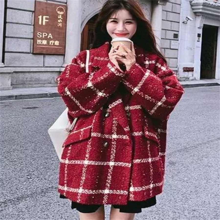 ウール生地のチェック柄コートです