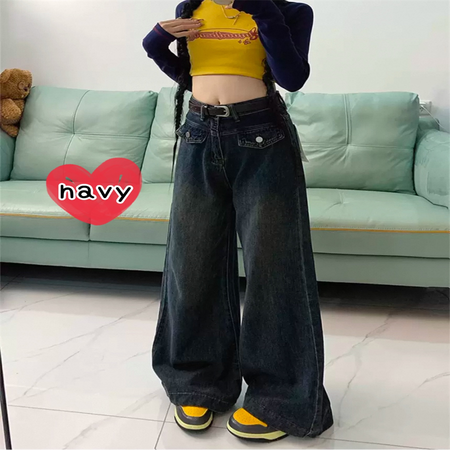 マキシ丈のデニムパンツです