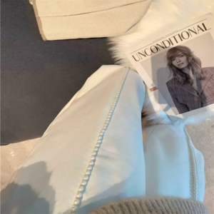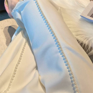センター部分のパール装飾が可愛いテーパードパンツ