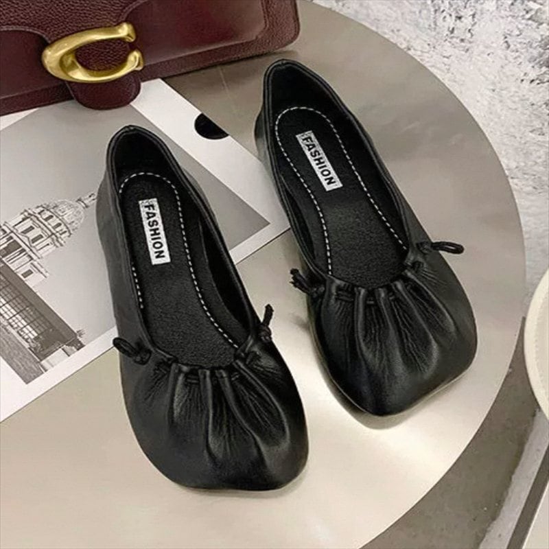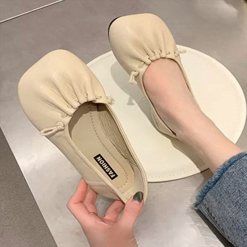 くしゅくしゅ感が可愛いローヒールパンプスです