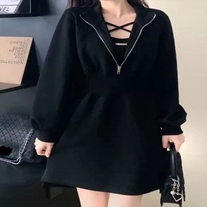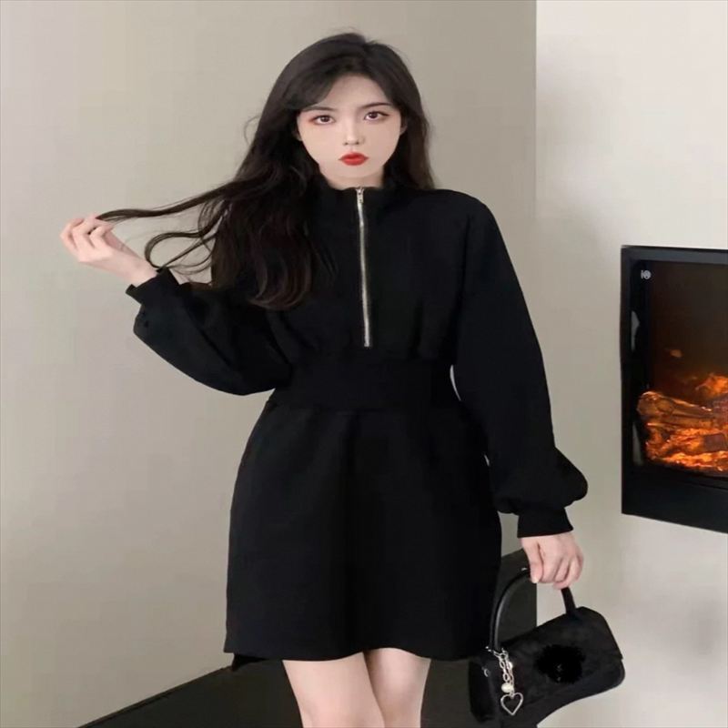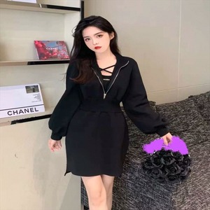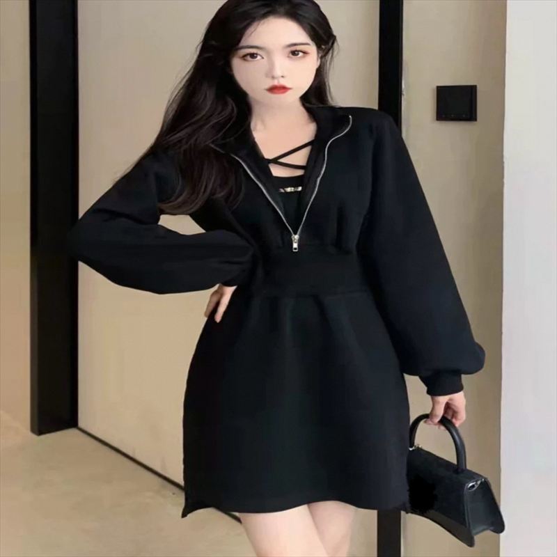 フロントファスナーのミニワンピース