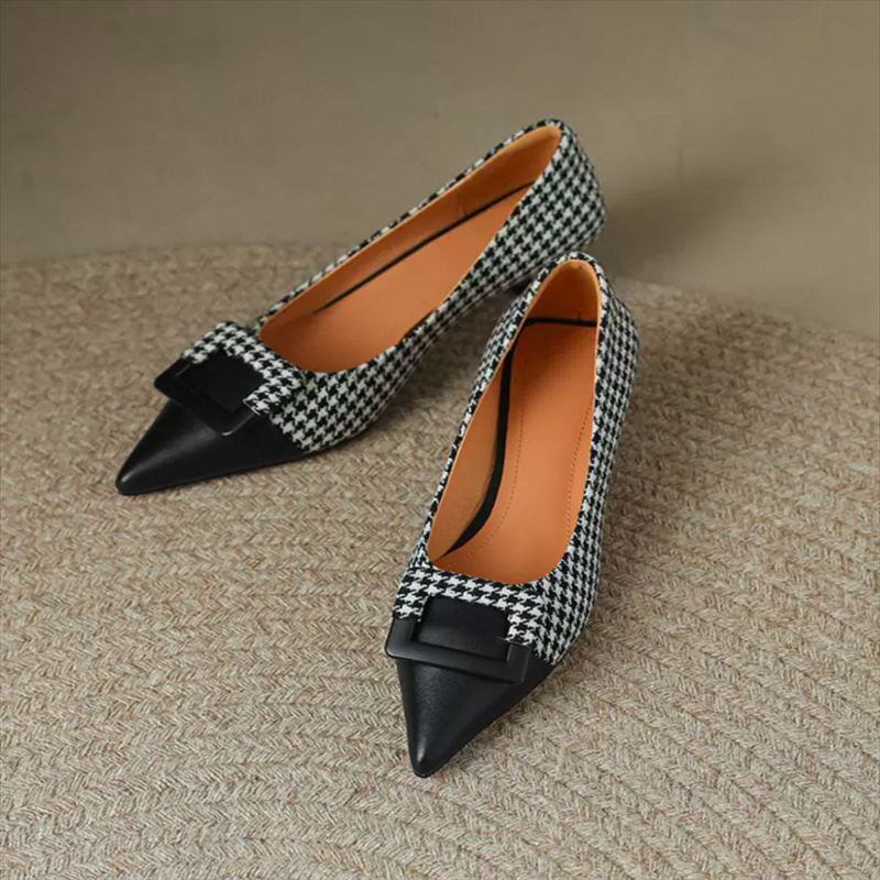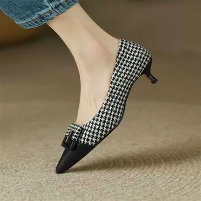 甲部分のモチーフが可愛い千鳥格子柄パンプス