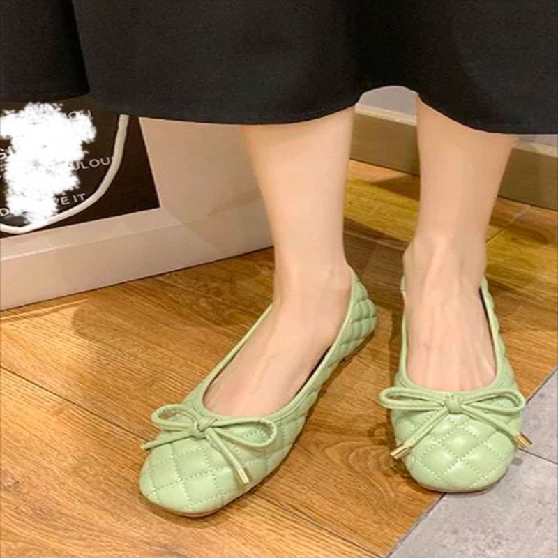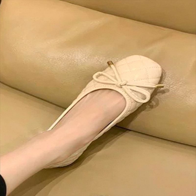 キルティングデザインのフラットヒールパンプスです