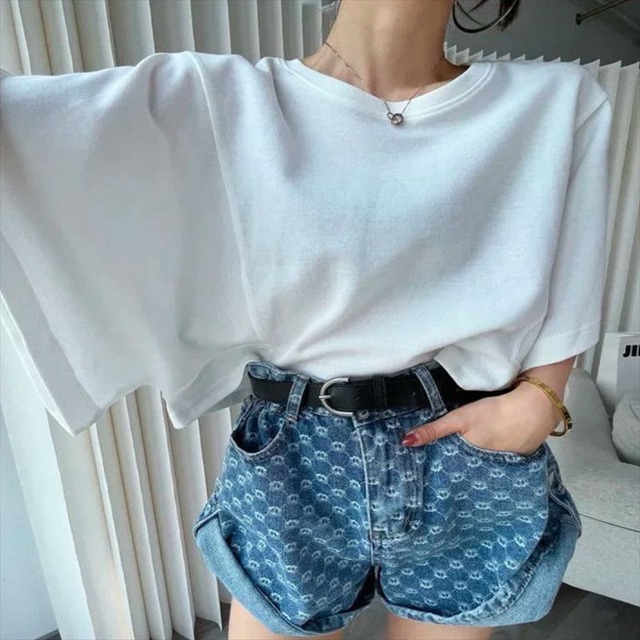 ギャザー入りのオフショルTシャツ