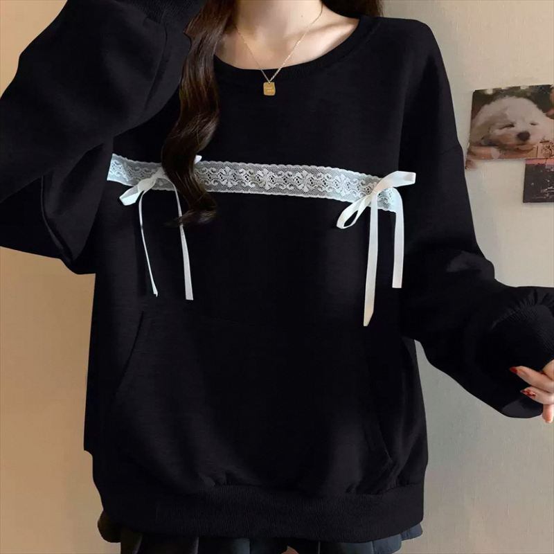 大きめポケット付きの長袖セーターです