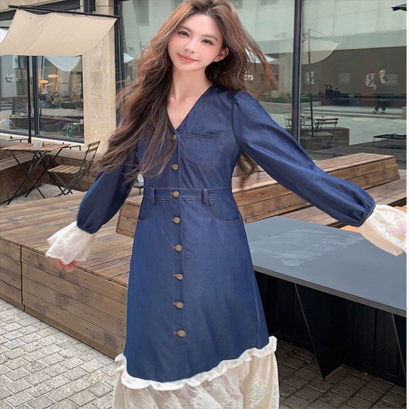 異素材ドッキングのロングワンピースです