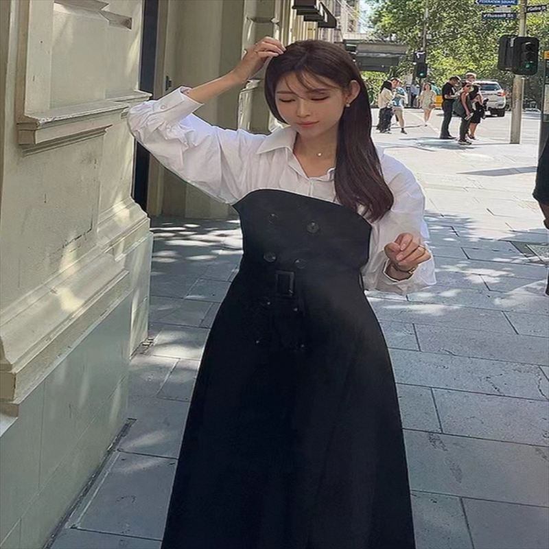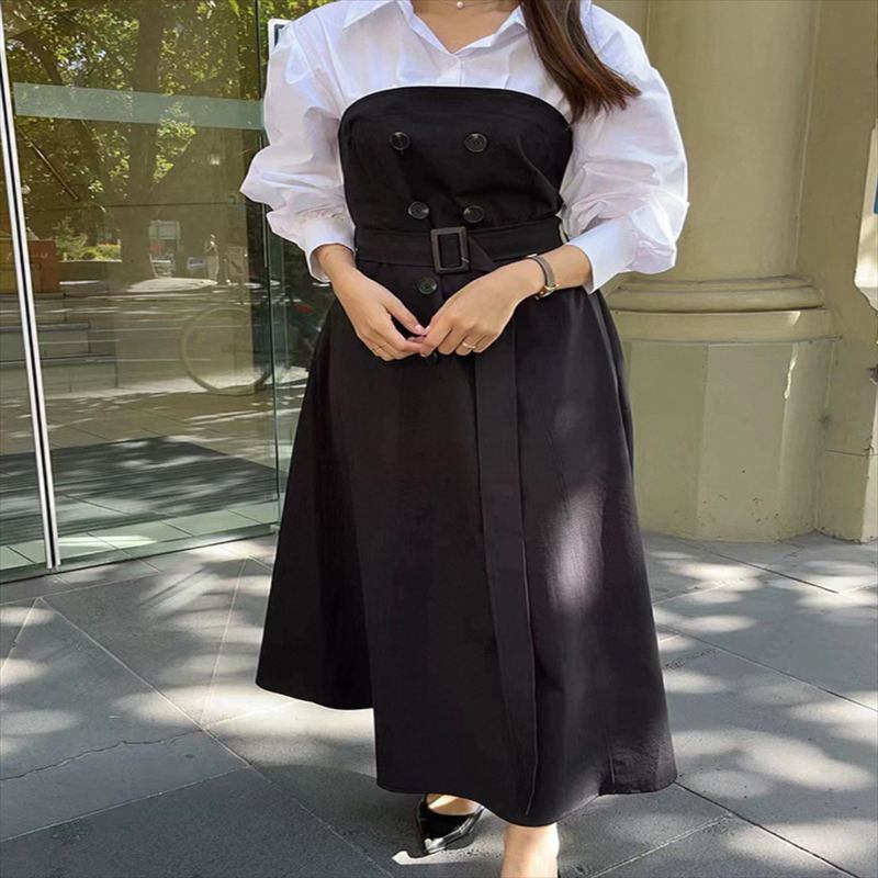 異素材ドッキングのロングワンピースです