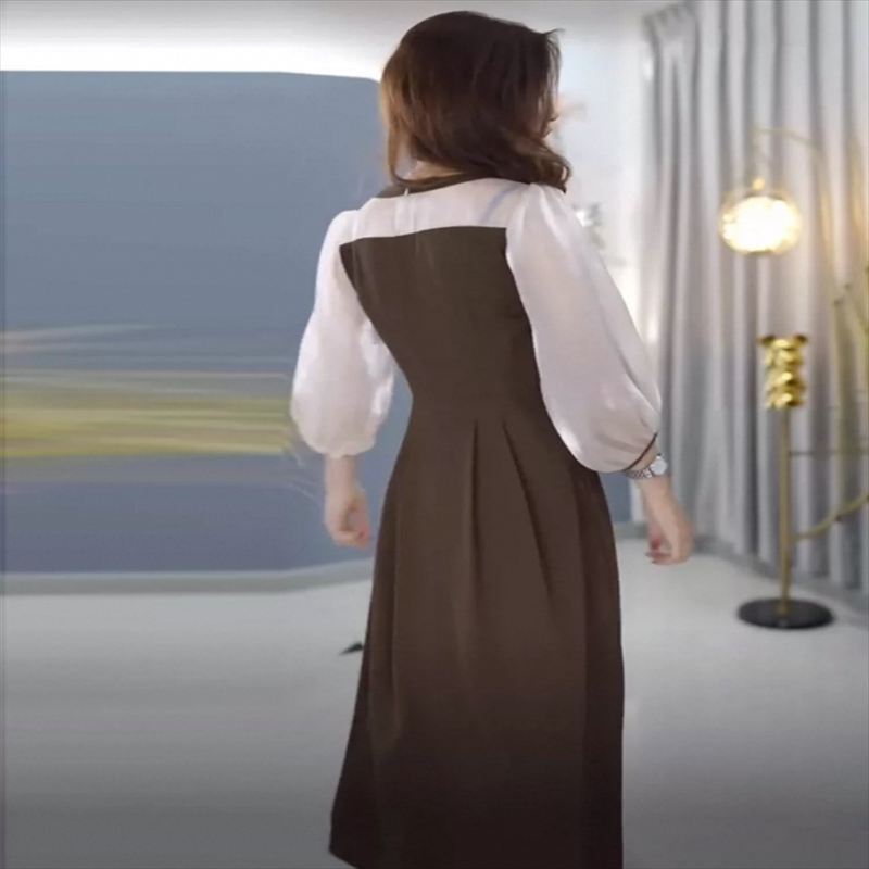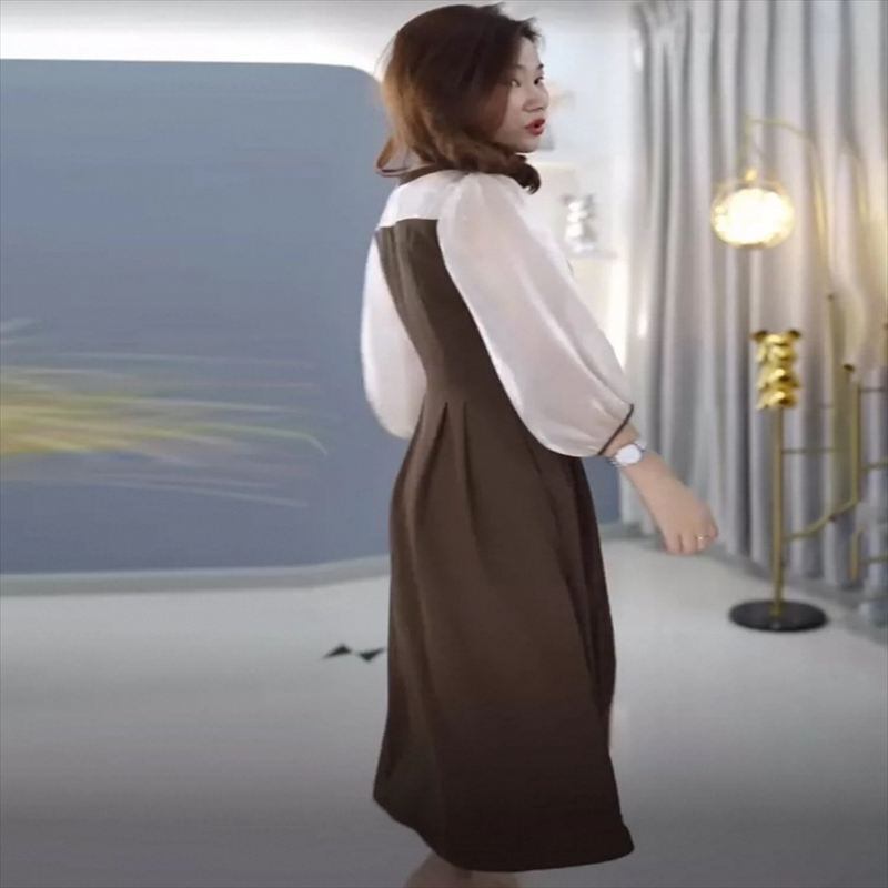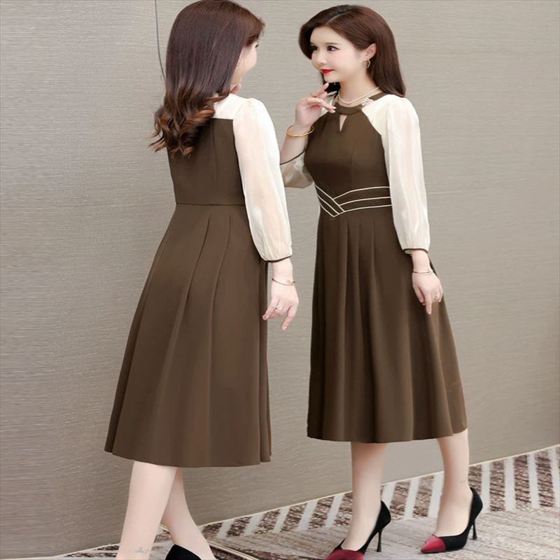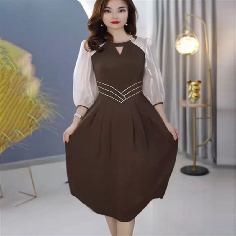 シフォン生地との切り替えが可愛いロングドレス