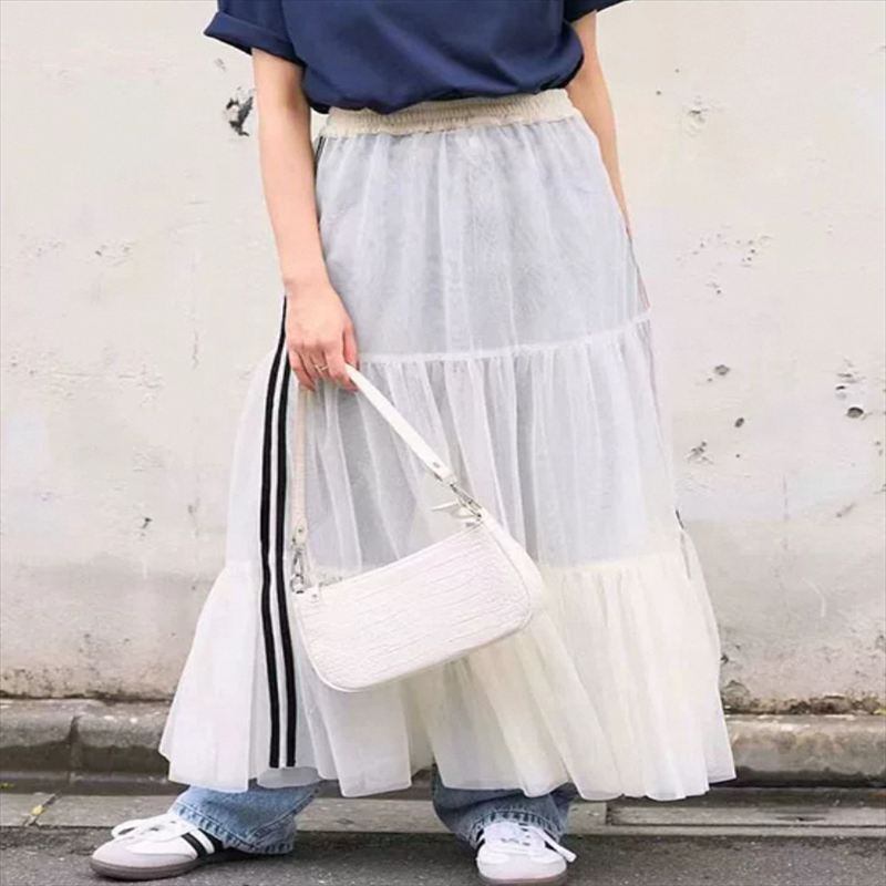サイドストライプのチュールスカートです