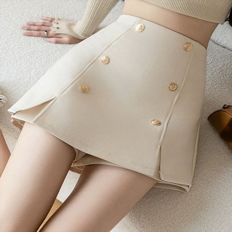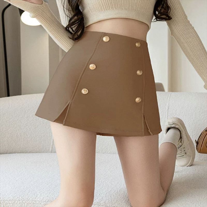 ゴールドの装飾が高見えしやすいミニ丈キュロット♪